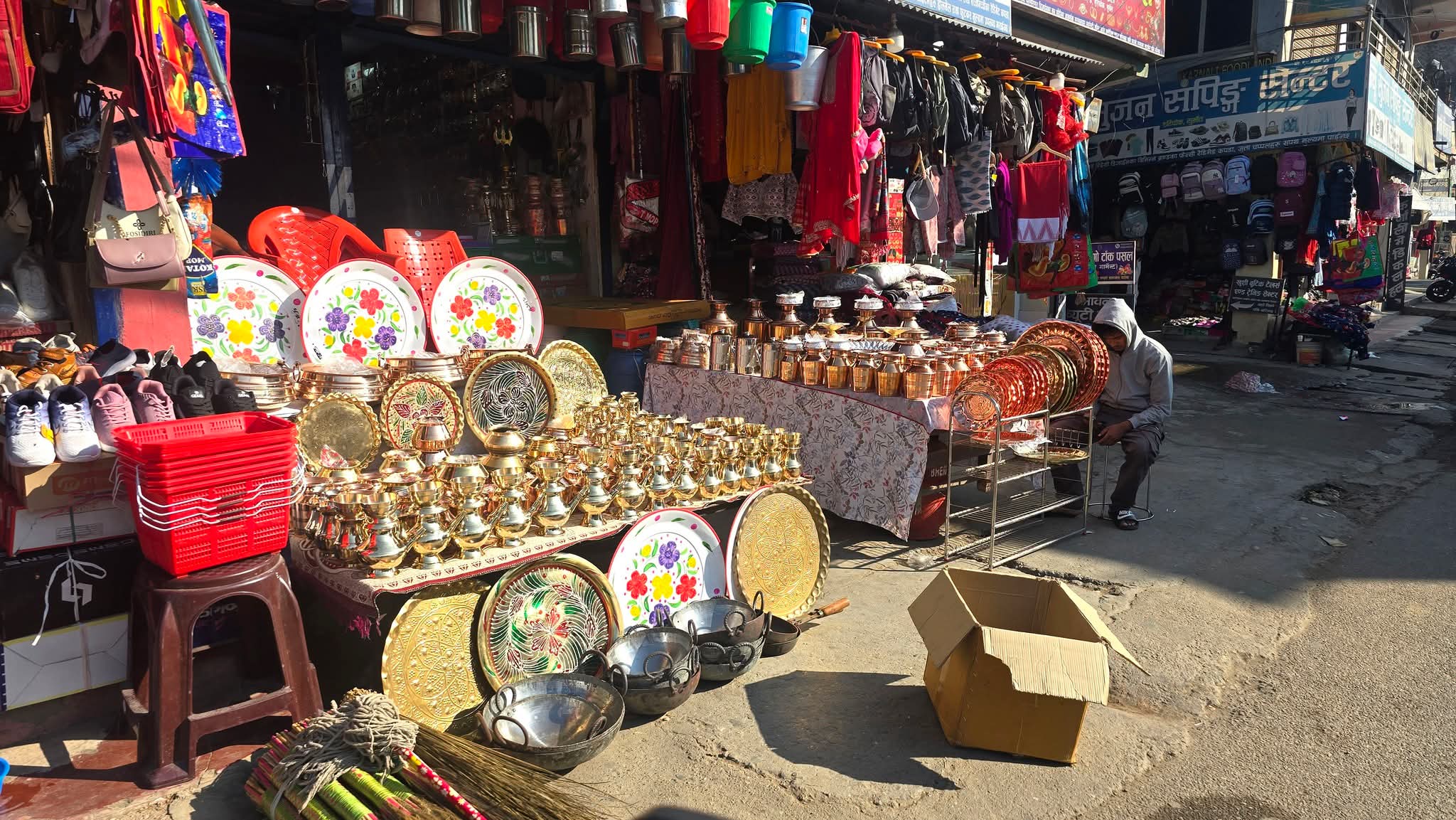 सर्खेत । कर्णाली प्रदेशको राजधानी सुर्खेतको वीरेन्द्रनगरस्थित मुख्य बजारमा शनिबार बिहान धनतेरसको दिन बिक्री गर्न राखिएको तामा र पित्तलका भाँडा। विशेष गरी दीपावलीको किनमेलको लागि आजको दिन निक्कै उत्तम मानिन्छ। आजको दिन खरिद गरेका सामग्रीहरू राखेर लक्ष्मी पूजा गरेमा धनधान्यकी देवी लक्ष्मीमाता प्रशन्न हुने जनविश्वास रहेको छ । तस्बिर: सुरेश आचार्य/रासस